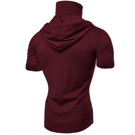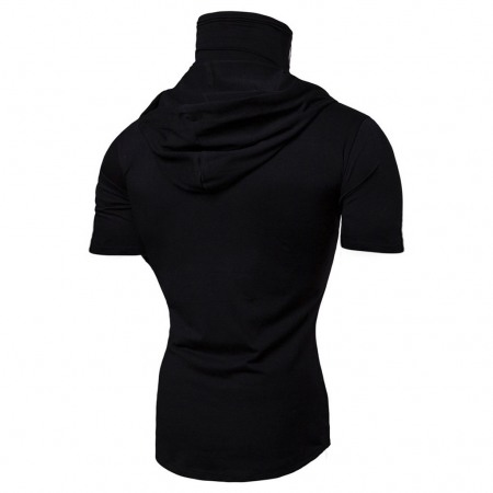Men's Personality Simple Stretch Fitness Mens Suit Hooded Short Sleeve T-Shirt