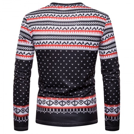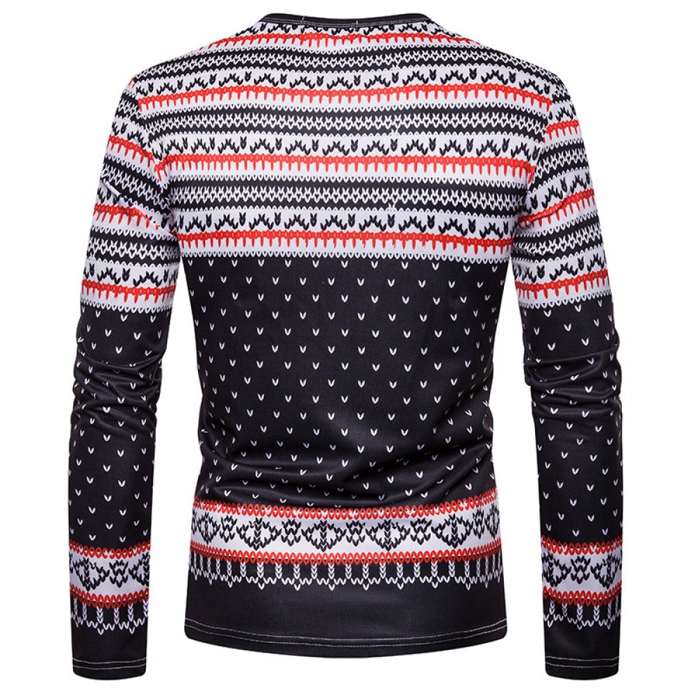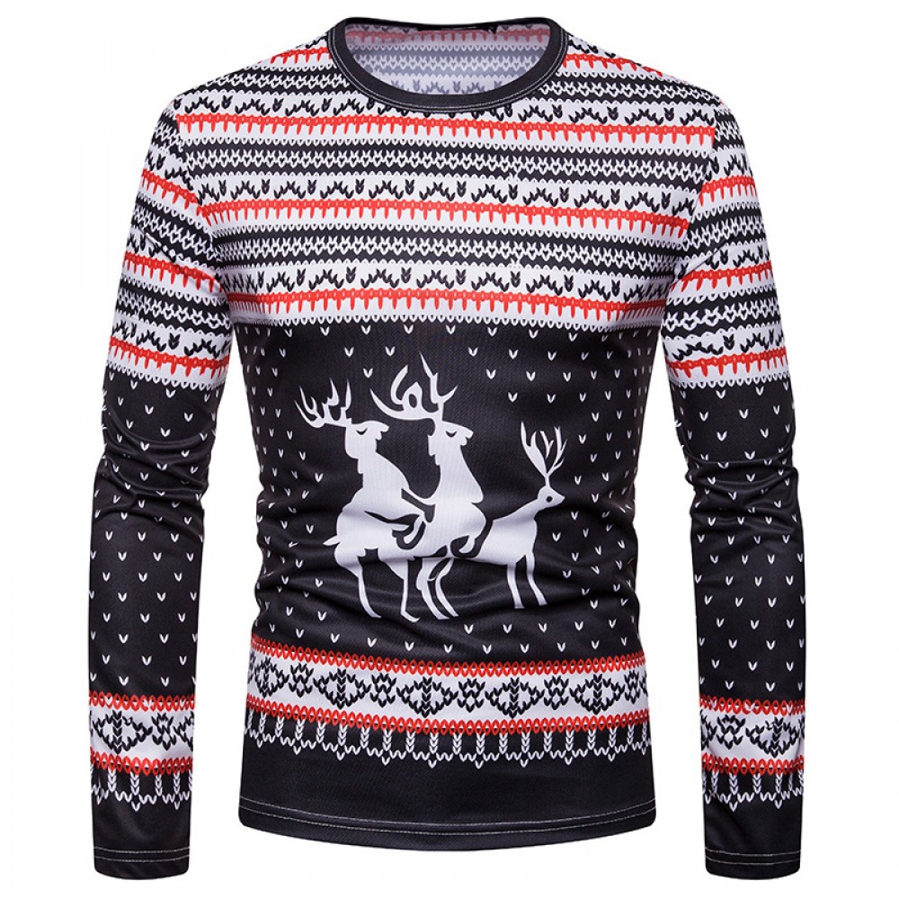 New 3D Personality Printing Fashion Men's Christmas Elk Pattern Long-Sleeved T-Shirt