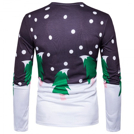 New Fashion Men's Round Neck 3D Christmas Tree Print Christmas Long-Sleeved T-Shirt