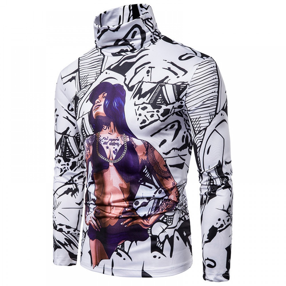 New Men's Plus Size 3D Classical Pattern Printing High Neck Long Sleeve T-Shirt Bottoming Shirt